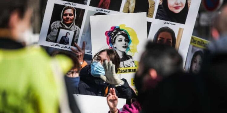 Geçen ay Paris’te İranlı aktivist Yasaman Aryani için yapılan protesto eylemi. İran’da politik kadın mahkumların düzgün gıdaya ve tıbbi bakıma erişimleri sürekli engelleniyor. Foto: Mohammed Badra/EPA