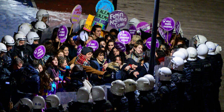 2019 8 Mart’ındaki feminist gece yürüyüşünün yasaklanmasıyla başlayan süreçle, İstanbul Sözleşmesi’nden çıkışın ardından bu yıl [İstanbul’da] 8 Mart’ta kadınların toplanmasını engellemek için her sokakta kurulan polis barikatları da yeterli olmadı ve binlerce kadın Cihangir Meydanı’nda patriyarkaya ve AKP iktidarına karşı mücadeleyi yükseltti. 13 Kasım’da Taksim’de gerçekleştirilen cihatçı katliamı bahane edilerek 25 Kasım yasaklanmaya çalışıldı, kadın hareketinin kararlı direnişine cevap olarak da İstanbul’da 216 kadın ağır polis şiddeti ve işkencesiyle gözaltına alındı. Yıllardır yasaklı olan Taksim’e değil, 27 Kasım’da Kadıköy’e çağrı yapan örgütlenmelerin de gözaltına ve polis şiddetine maruz kalması, 13 Kasım katliamını “Allah’ın lütfu” olarak değerlendirmek isteyen iktidarın, toplumsal muhalefeti sıkıştırmaya çalıştığı çemberi daha da daraltmaya karar verdiğini gösterdi.